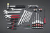 KTC [特長] ●片開きケース ●市販の南京錠で施錠ができます。 ●収納時にハンドルが出っ張りません。 ●本体から取外して持運べるキャリングトレイ付 [セット内容] ●(+)ドライバー…#1×75・#2×100・#3×150mm ●(−)ドライバー…5.5×75・6.3×100・8×150mm ●(−)割柄貫通ドライバー…10×155mm ●スタビードライバー…(+)#2×25・(−)6.3×25mm ●ベビードライバー…(+)#1×75・(−)2.5×75mm ●めがねレンチ…10×12・11×13・12×14・14×17・19×21・22×24m ●両口スパナ…8×10・10×12・11×13・ 12×14・14×17・17×19mm ●モンキーレンチ…200・300mm ●コンビネーションプライヤー…200mm ●ウォーターポンププライヤー…250mm ●ラジオペンチ…160mm ●ニッパー…160mm ●コンビハンマー…742g ●ヤスリ半丸…100mm [ケース仕様] ●ケース材質…スチール ●ケースサイズ…410(W)×210(D)×150(H)mm ●重量…8.5kg